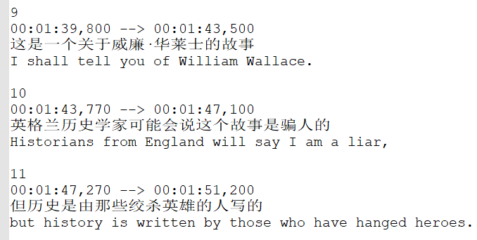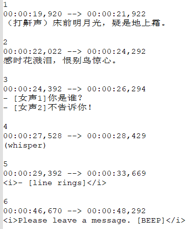 純單語行;整個(gè)字幕文件中,每個(gè)時(shí)間軸里(下面)只有一行對(duì)白。